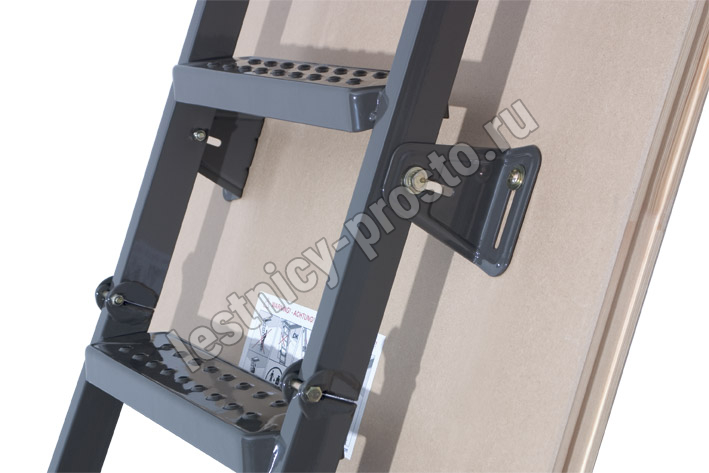 Чердачная металлическая лестница LMS – это надежная складная конструкция, состоящая из марша и термоизоляционной крышки, изготовленной из ДВП и окрашенной в бежевый цвет.
