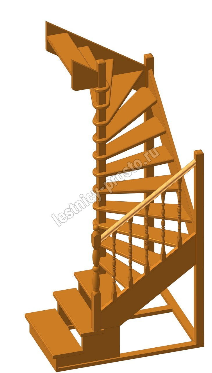 Деревянная межэтажная лестница ЛЕС-03 2915-3075 проем 1630-1120, Лиственница