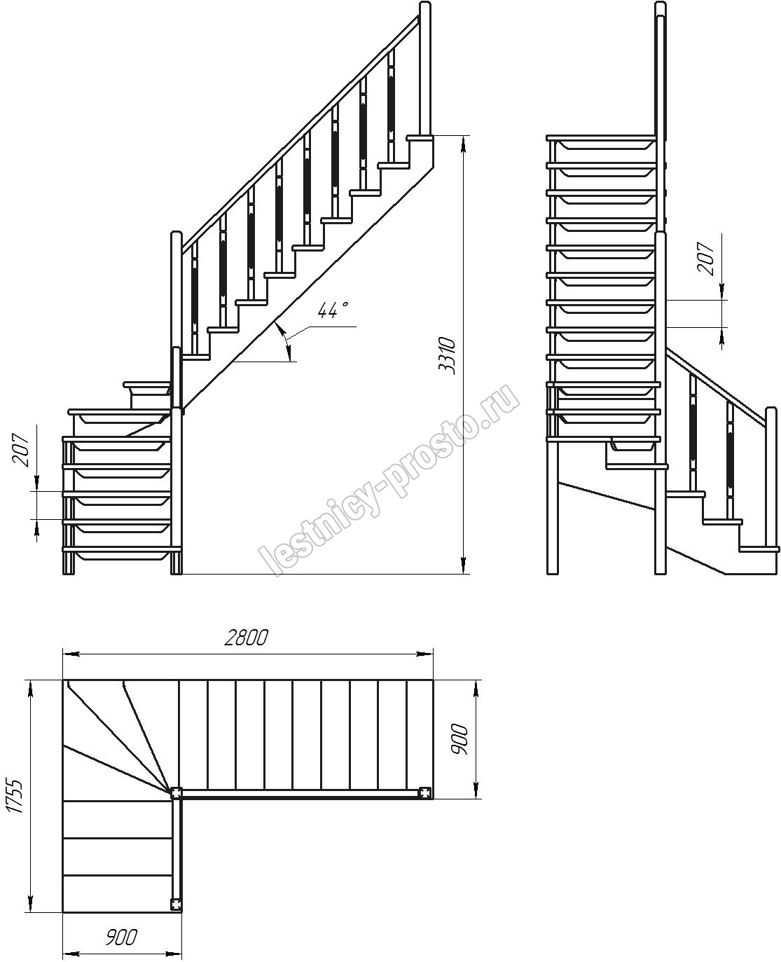 Высота лестницы 3310 мм