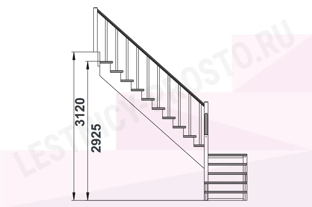 Высота лестницы 2925 - 3120 мм