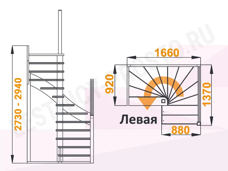 Схема лестницы К-001М/1 с поворотом налево