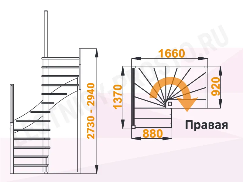 Схема лестницы К-001М/1 с поворотом направо