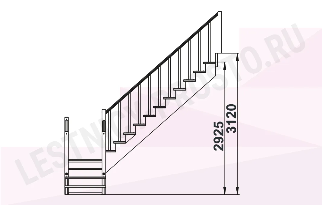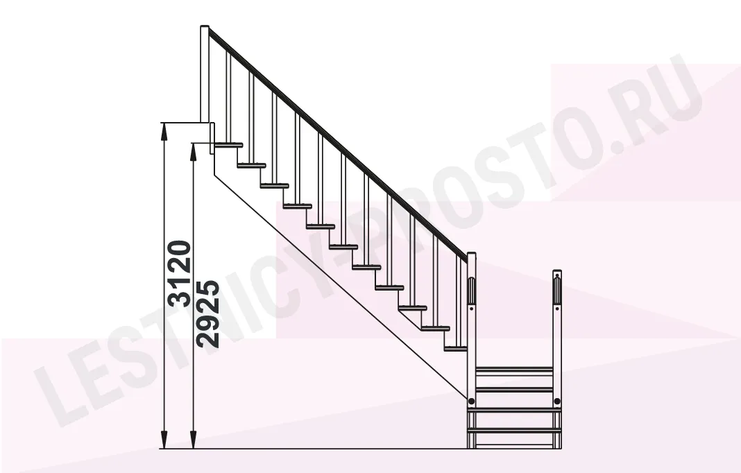 Базовый комплект включает в себя деревянные элементы лестницы и ограждения без какого-либо покрытия.