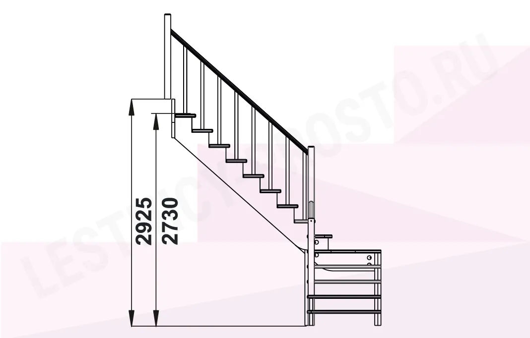 Базовый комплект включает в себя деревянные элементы лестницы и ограждения без какого-либо покрытия.