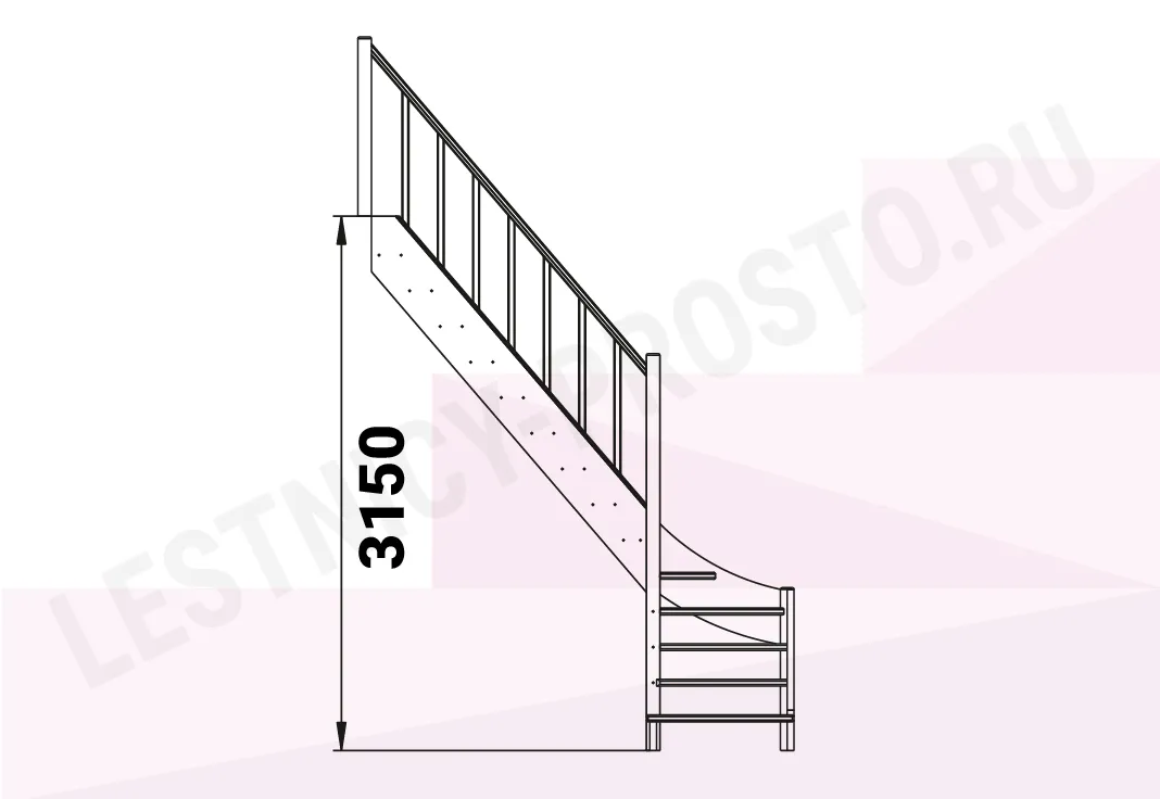 Схема лестницы ЛС-07М/2 с поворотом налево