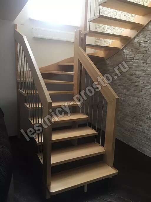 возможна комбинированная лестница: из сосны (ступени бук, ясень, дуб);