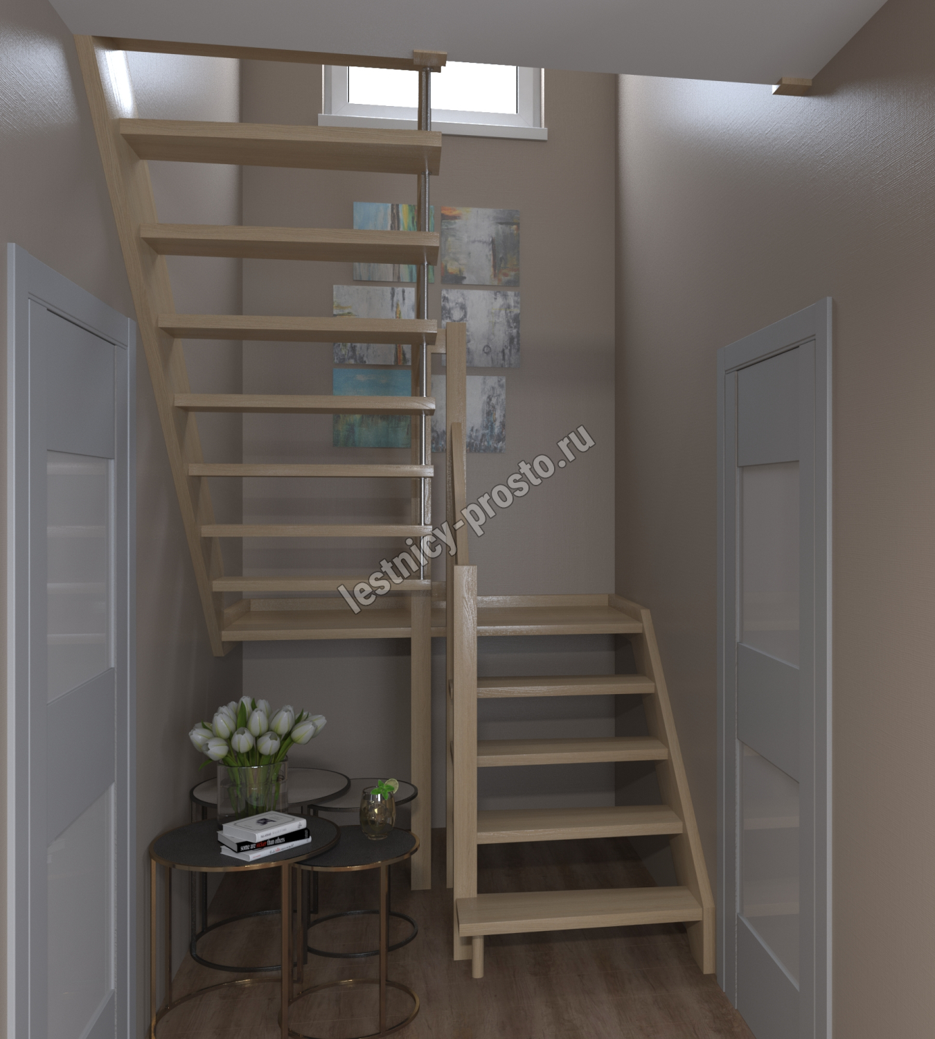 Лестница Prosto Console п-образная забежная, бук h260 см