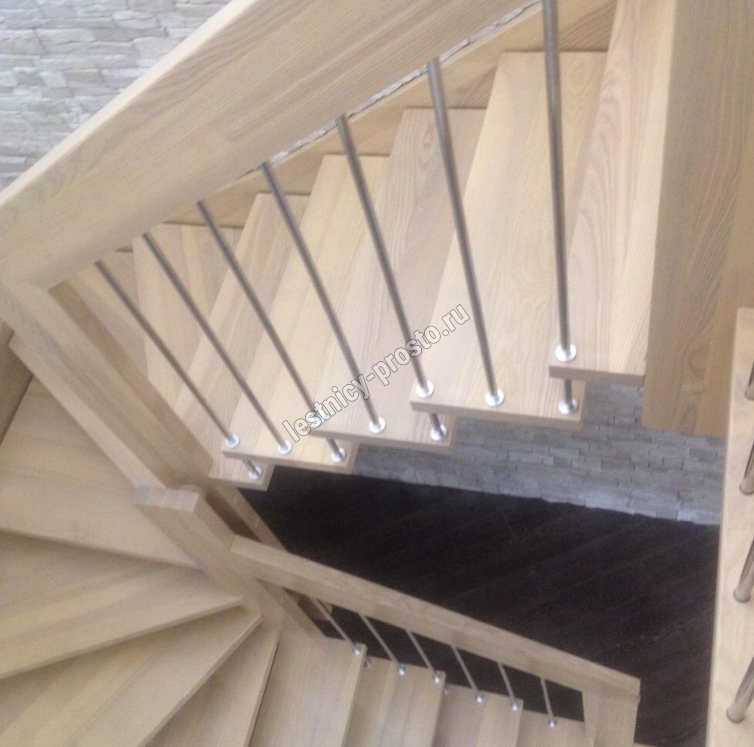 возможна комбинированная лестница: из сосны (ступени бук, ясень, дуб);