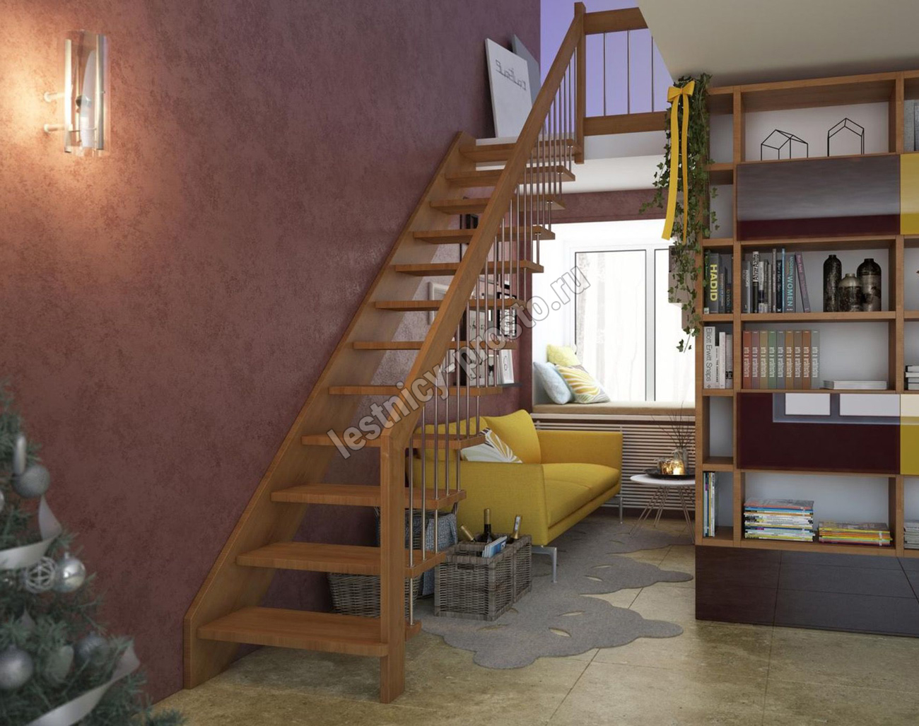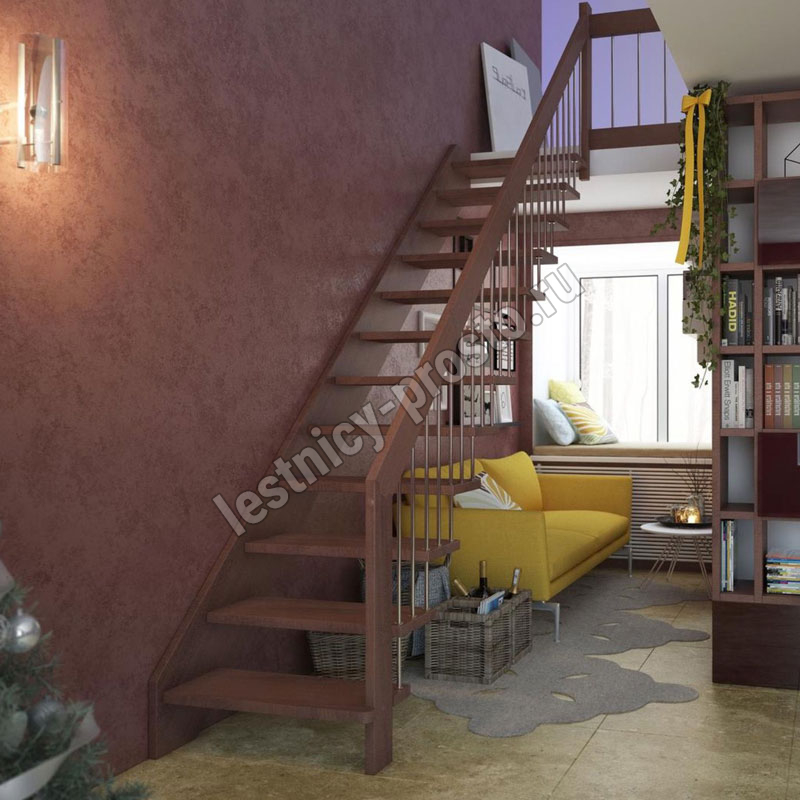 возможна комбинированная лестница: из сосны (ступени бук, ясень, дуб);