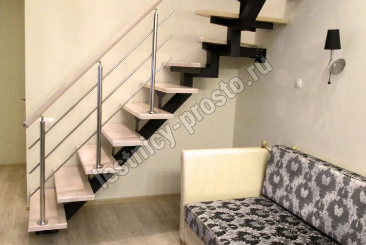 Комплект ограждений для П-образной лестницы PROSTO MONO из 13 ступеней.