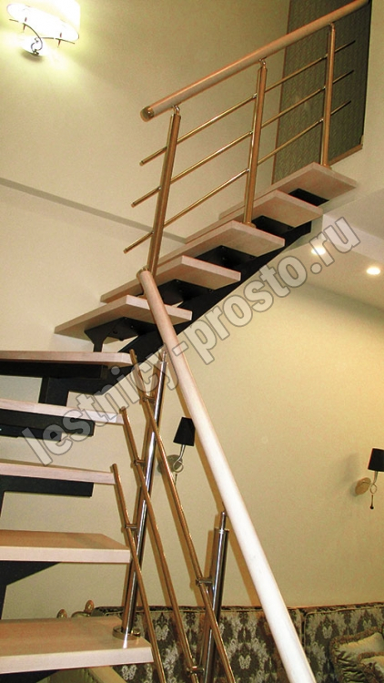 Комплект ограждений для П-образной лестницы PROSTO MONO из 14 ступеней.