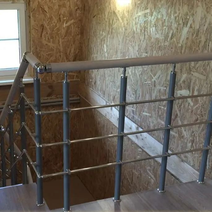 Ограждение для П-образной лестницы PROSTO DUE/DOUBLEс крашеными стойками и струнами