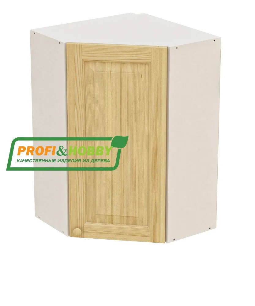 Шкаф навесной угловой 610х610х960 + фасад сосна бесцветный акриловый лак
