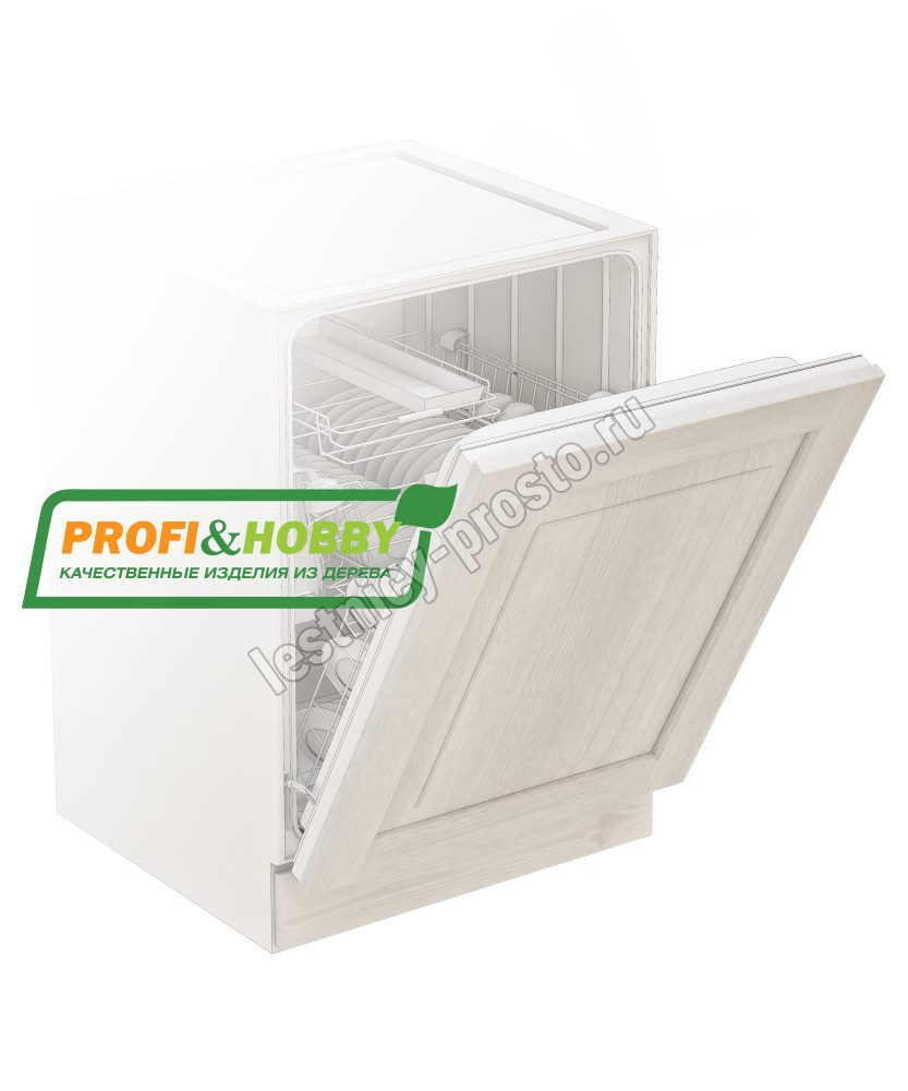 Фасад для посудомоечной машины изготовлен из 100% массива дерева, без шпона и без МДФ/ДСП.