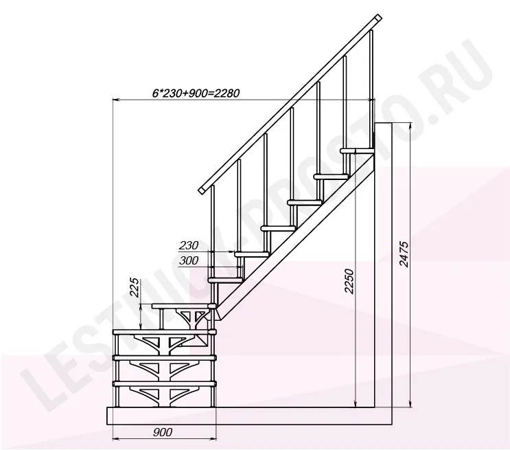 - таким образом вы получаете возможность увеличить общую высоту подъёма лестницы до необходимой.