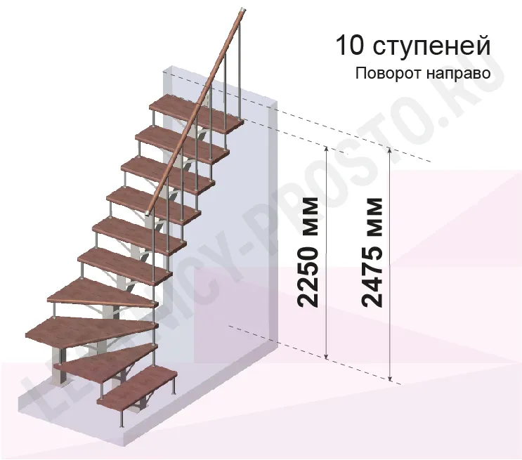 Лестница PROSTO MONO Г-образная h247.5 см, ступени лиственница