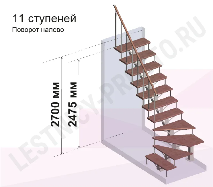 Лестница PROSTO MONO Г-образная h270 см, ступени лиственница