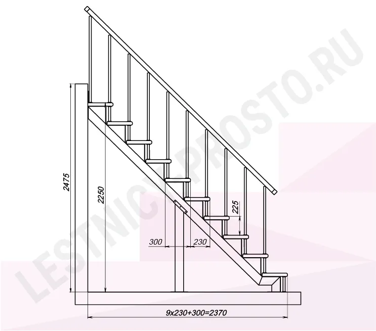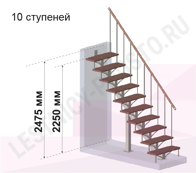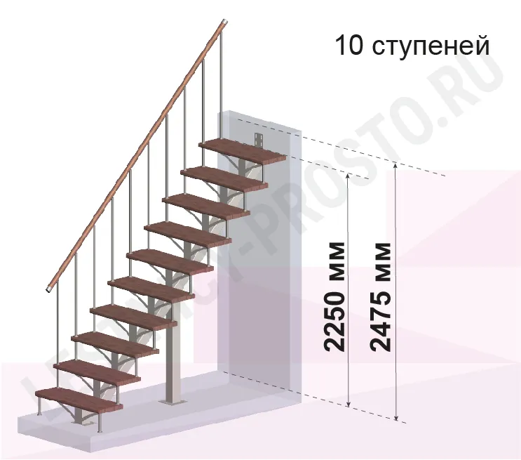 Лестница PROSTO MONO прямая, h247.5 см, ступени хвоя