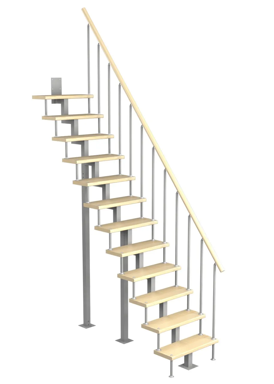 Конструкция представляет собой стальной монокосоур, на который крепятся ступени из выбранной породы дерева.