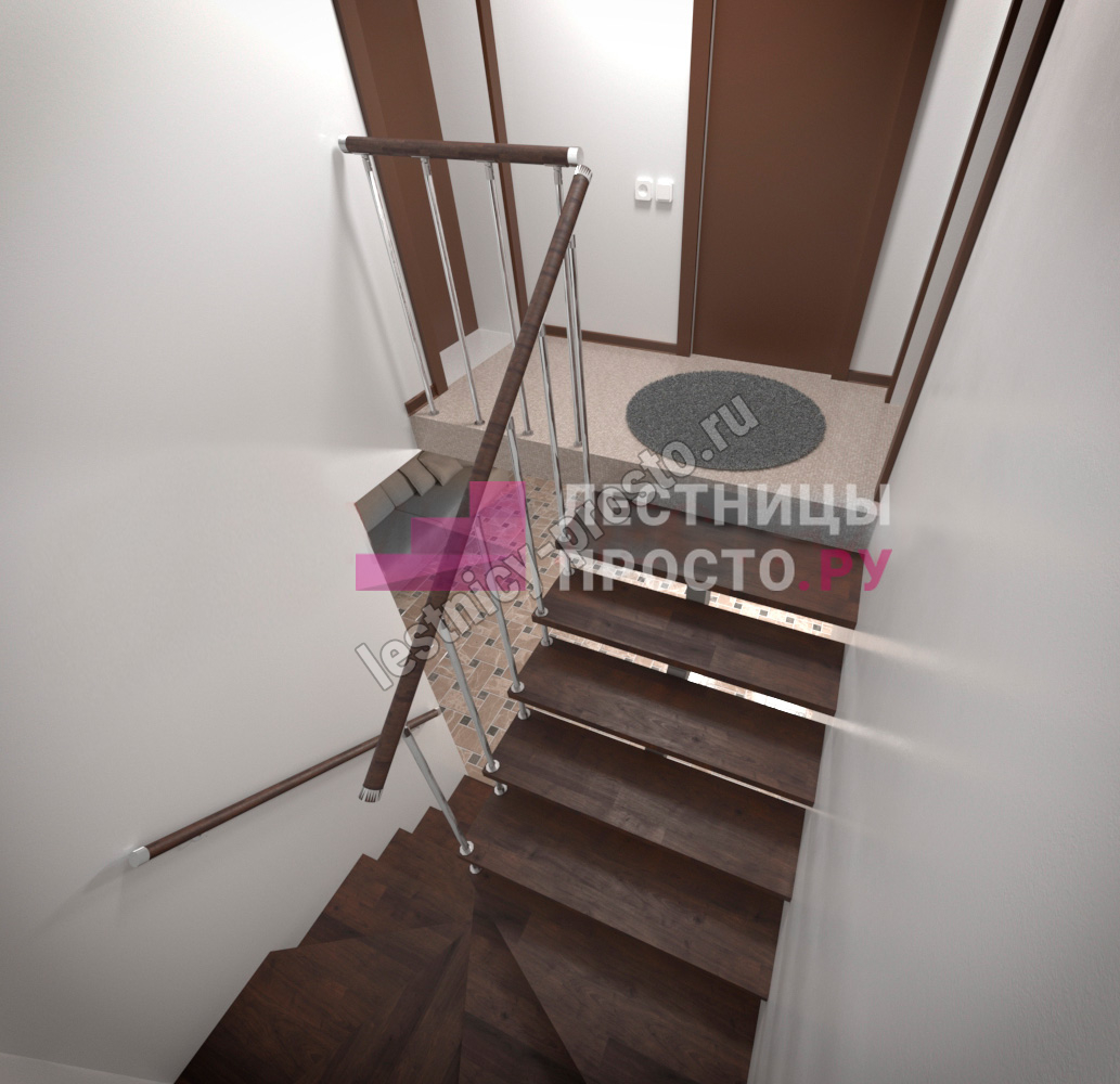 Поворот реализован посредством поворотных ступеней, высота поворота определяется параметрами вашего помещения и размерами проёма.