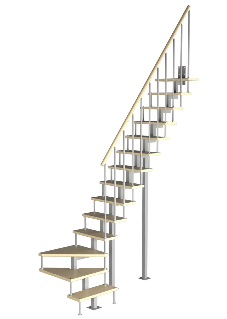 Модульная конструкция позволяет собрать лестницу наилучшим образом подходящую по форме вашему помещению.