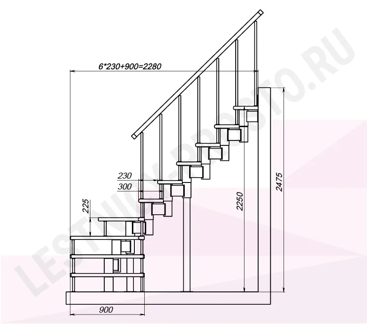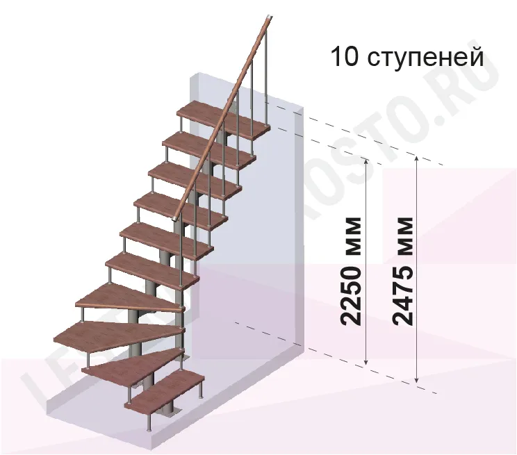 Высота лестницы 2250 - 2475 (10 ступеней) мм