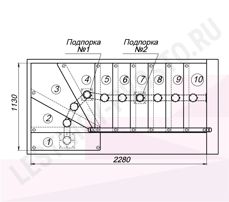 Габариты в плане 1130 × 2280 мм