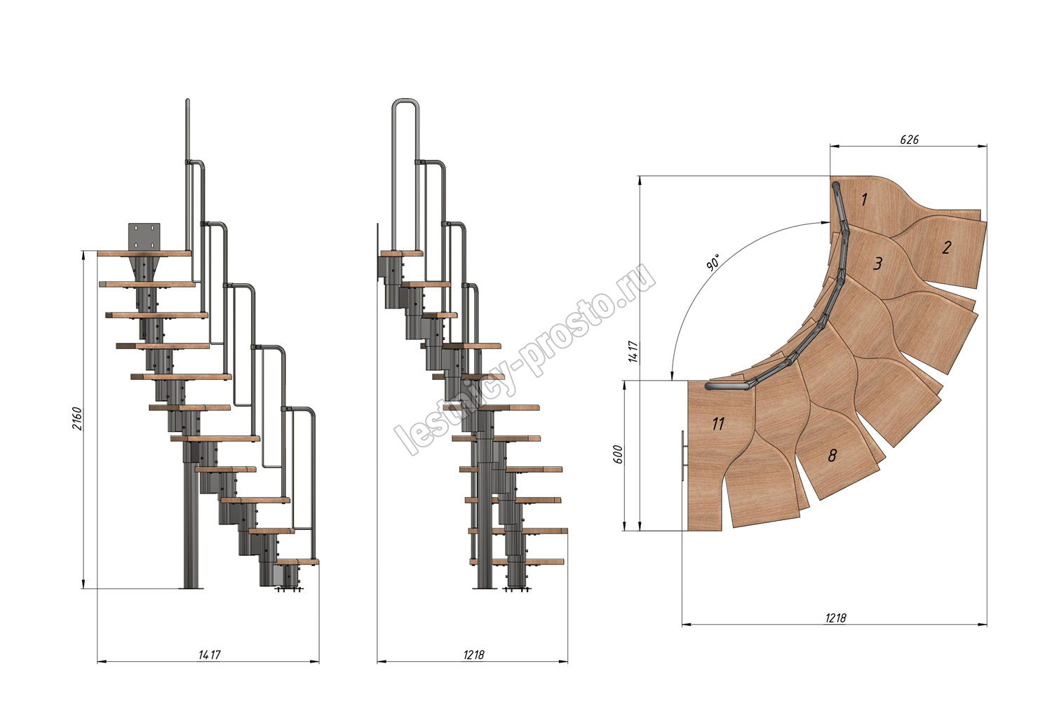 Лестница Prosto Urban Black гусиный шаг 600 мм, h198-288 см (11 ступеней), ясень