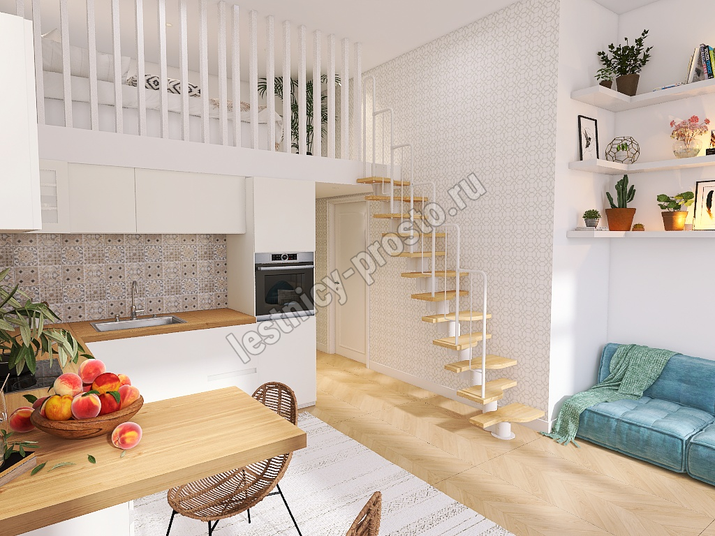 - Возможно установить лестницу как прямую, так и с поворотом внизу или вверху; при этом нужно понимать, что поворот менее удобен, чем прямой участок лестницы.