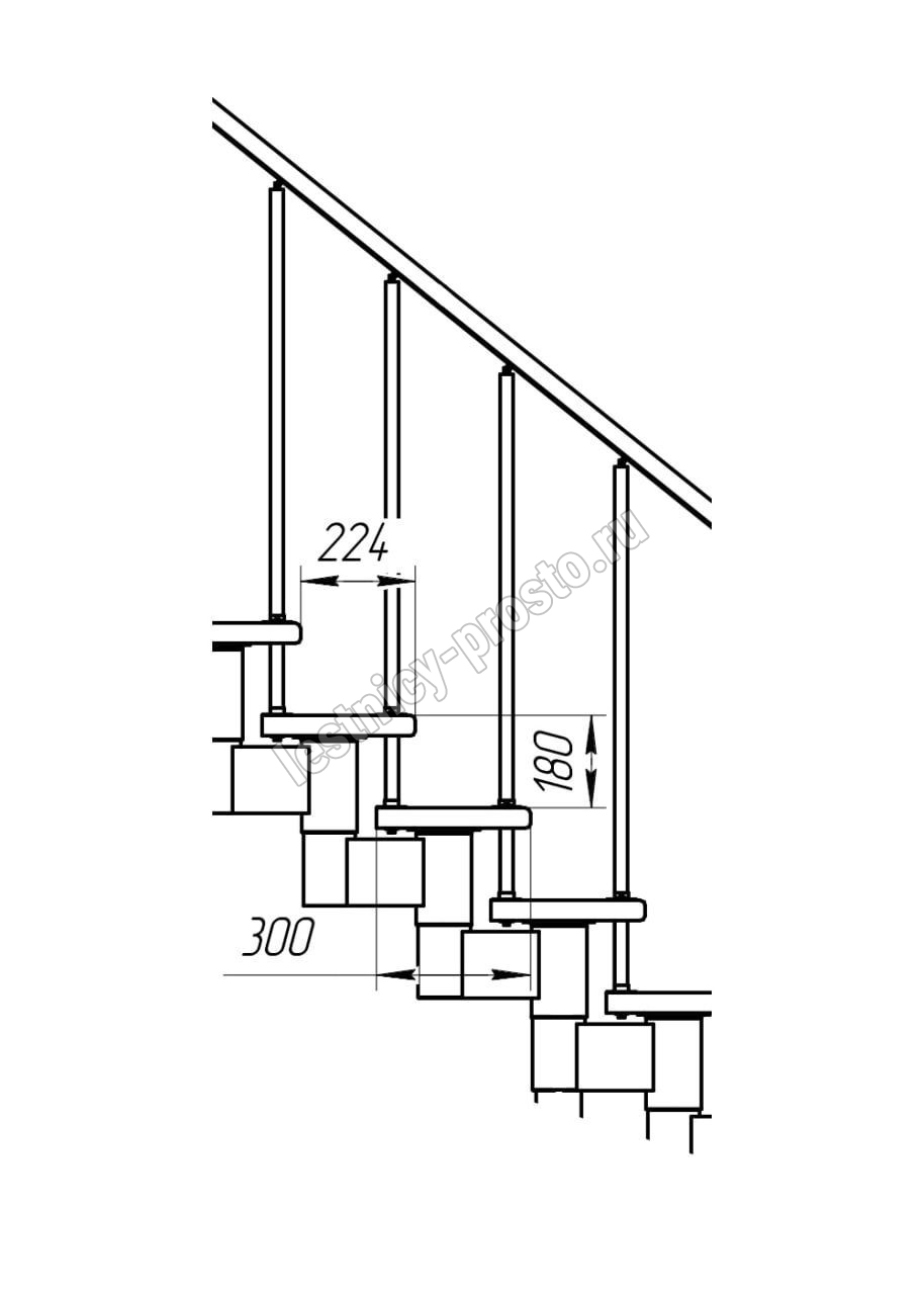 Модульная лестница Фаворит 180 2700-2850, Белый, Лиственница, Нержавеющая сталь