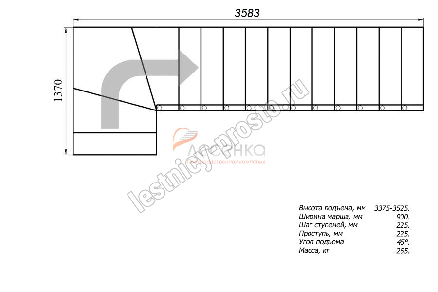 Модульная лестница Фаворит 225 3375-3525, Серый, Лиственница, Крашеная