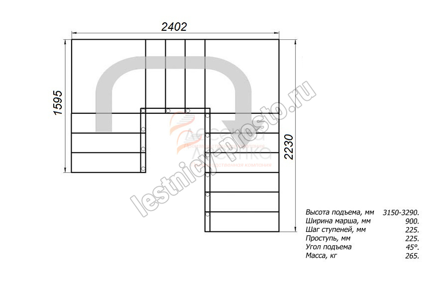 Модульная лестница Комфорт 225 3150-3290, Черный, Бук, Нержавеющая сталь