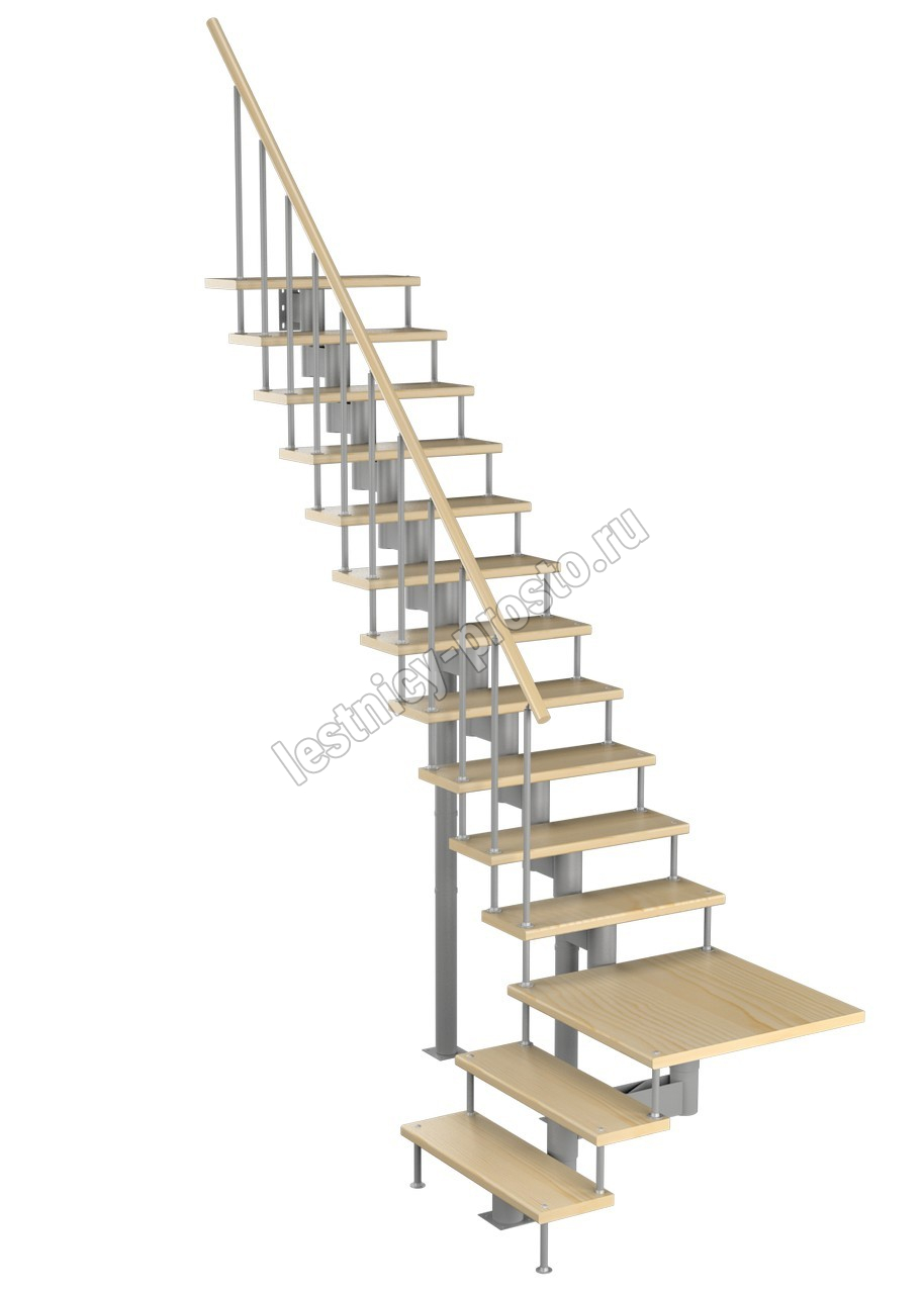 Модульная лестница Статус 225 3150-3290, Белый, Сосна, Нержавеющая сталь