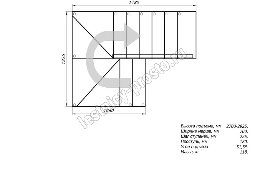 Модульная малогабаритная лестница Эксклюзив 2700-2925, Черный, Сосна, Крашеная, Без Ступений
