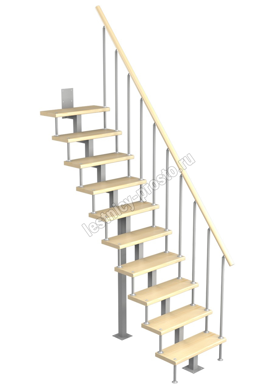 Модульная малогабаритная лестница Линия 2250-2475, Серый, Бук, Крашеная