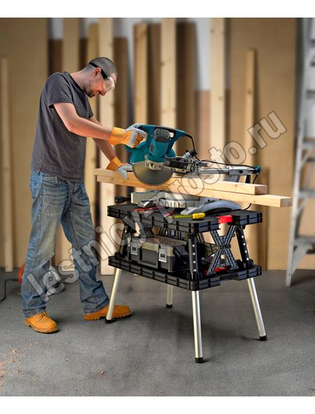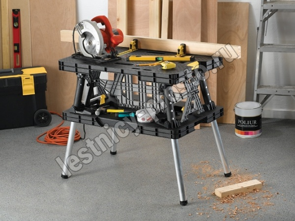 Складной верстак KETER - это передвижное рабочее место. Изготовлен из пластика устойчивого к истиранию и высоким температурам. Складная конструкция позволяет быстро подготовить верстак к использованию. Большая рабочая поверхность выдерживает нагрузку до 453 килограмм. В сложенном виде верстак занимает совсем мало места.