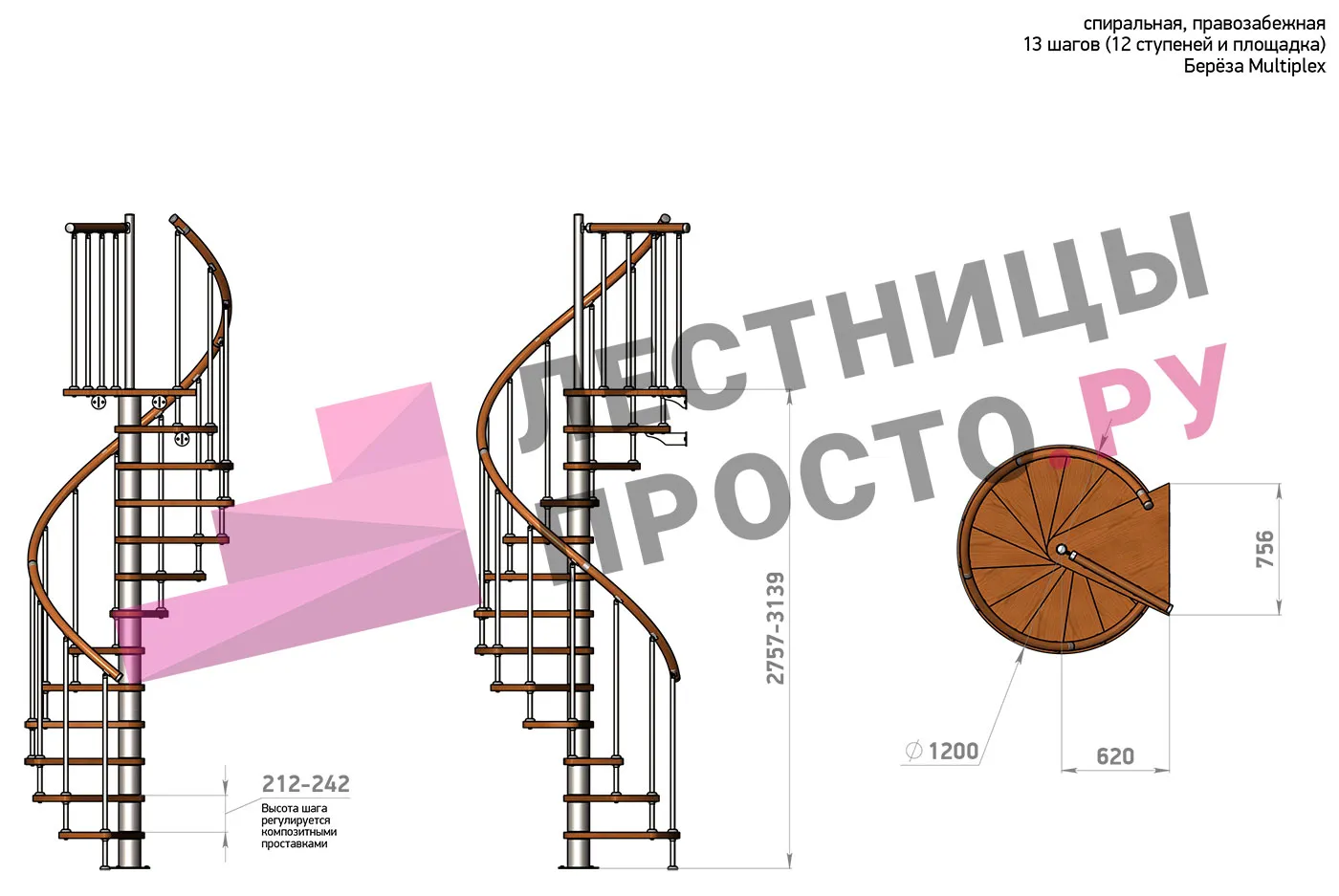 Высота лестницы 2757 - 3139 (12 ступеней) мм