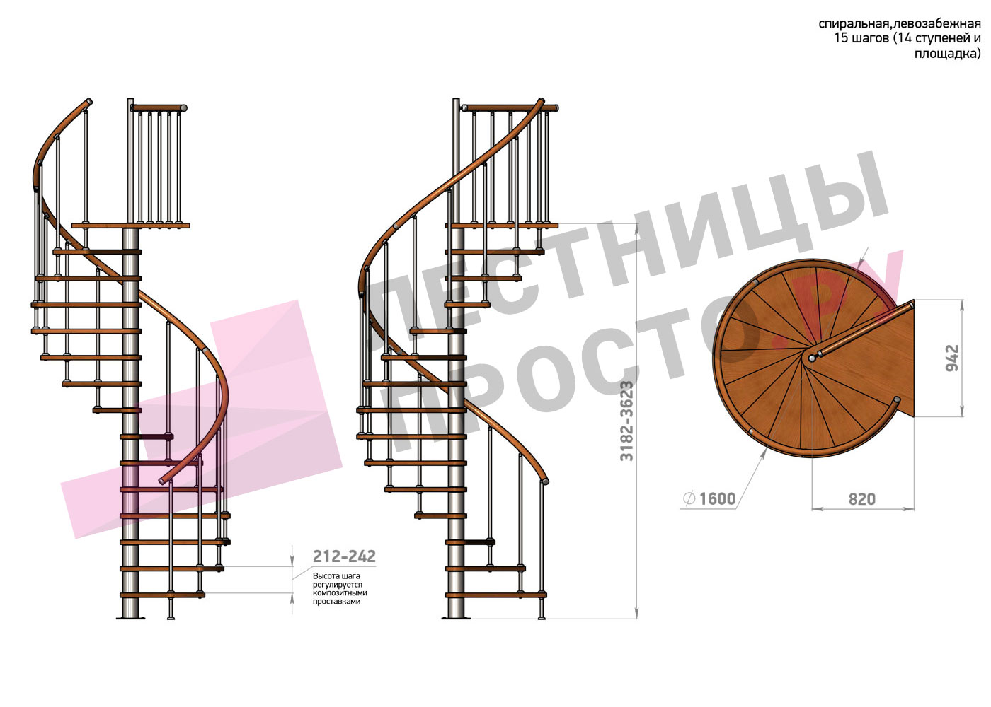 Винтовая лестница Prosto Spiral Black D160см, h318.2-362.3 см |