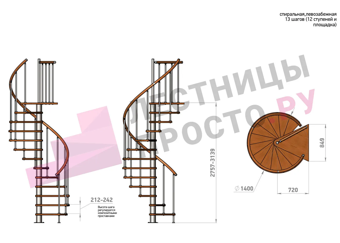 Винтовая лестница Prosto Spiral Black/Высота 2757 - 3139 мм