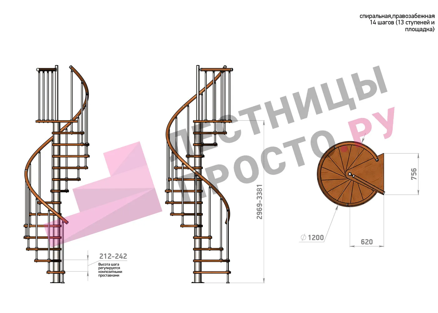 Винтовая лестница Prosto Spiral Black/Высота 2969 - 3381 мм