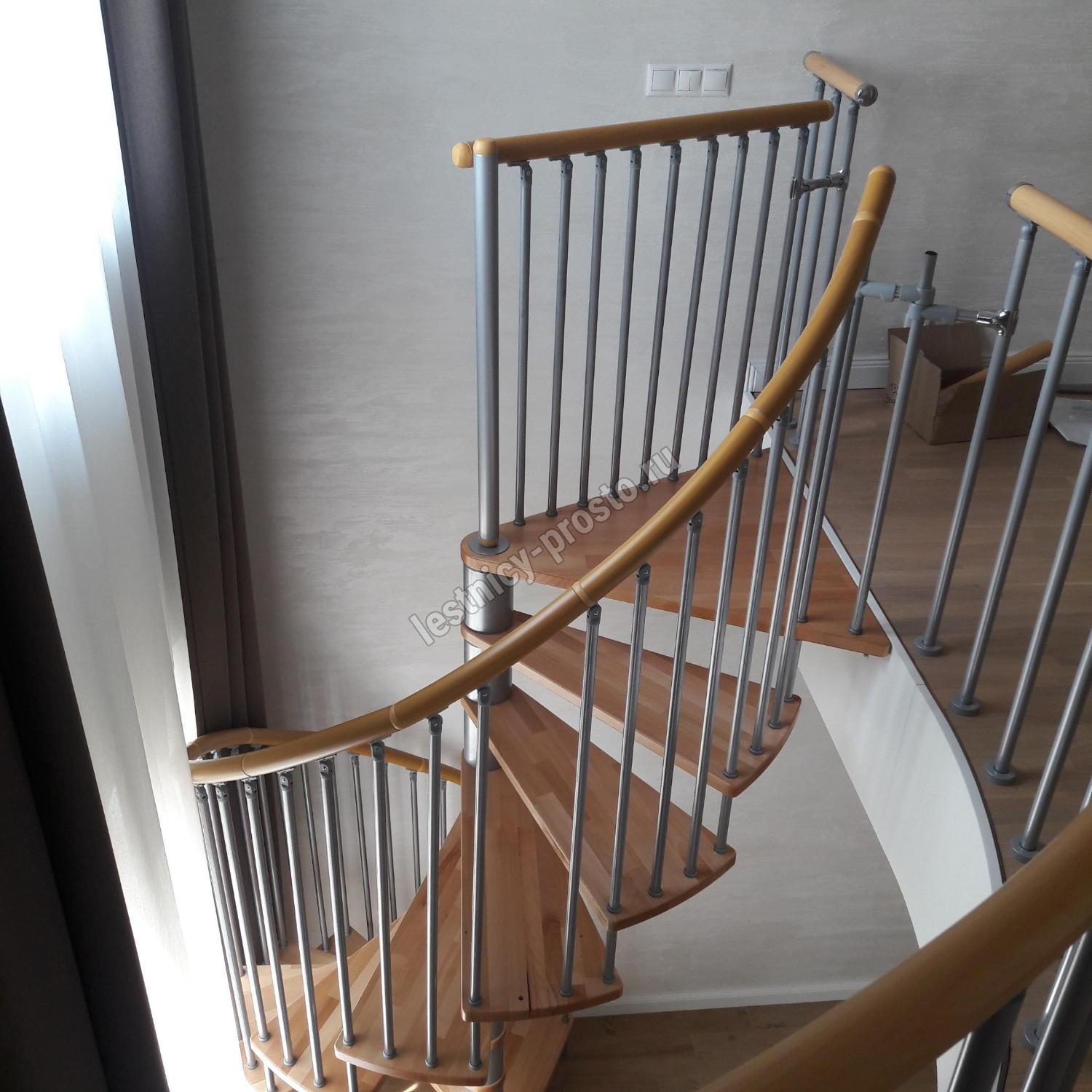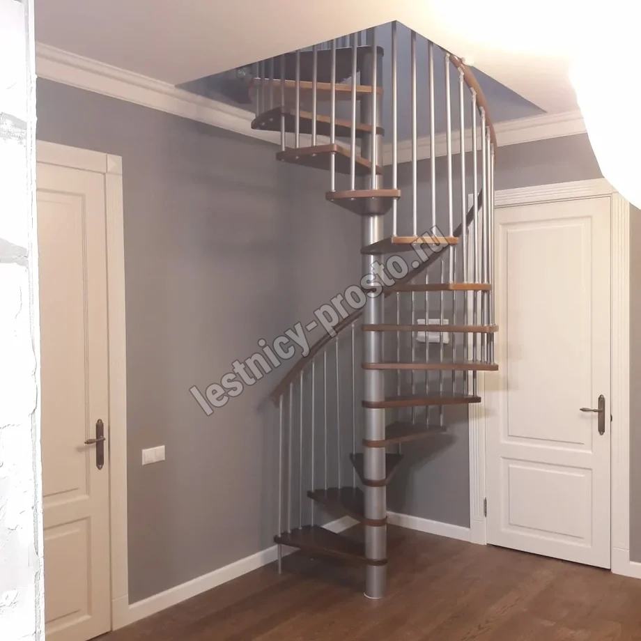 Винтовая лестница SPIRAL WOOD d140 см, серебро, лакированный дуб