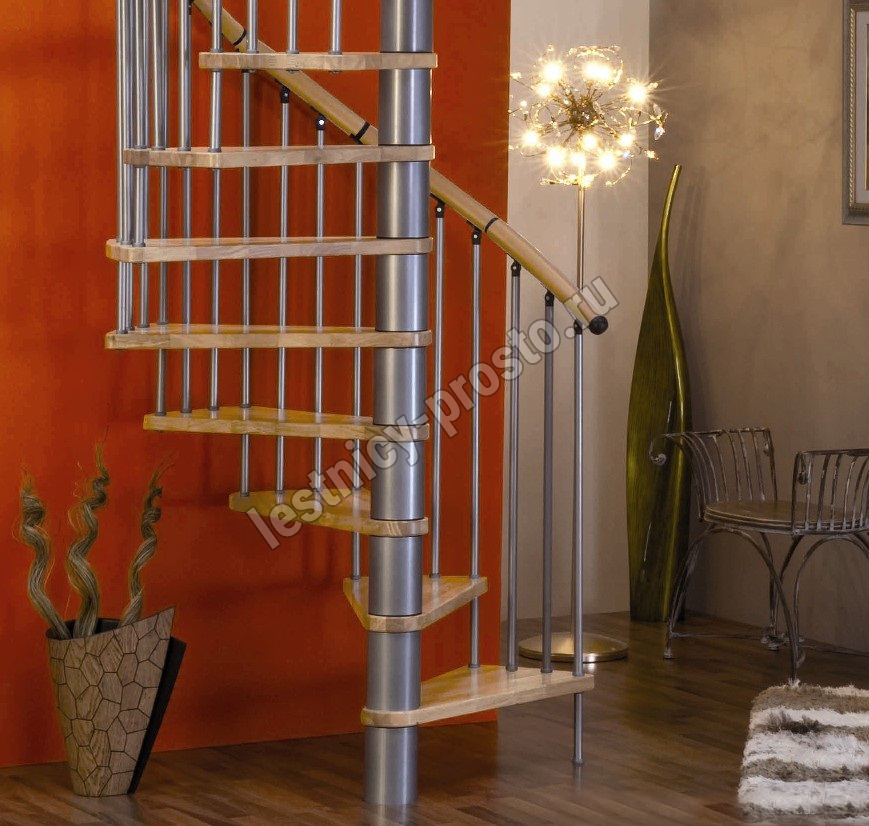 Винтовая лестница SPIRAL DECOR d140 см, серебро, бук лакированный