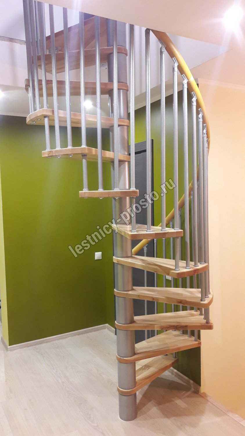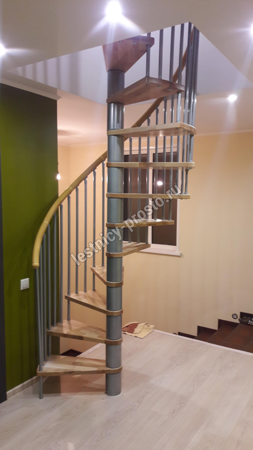 Винтовая лестница SPIRAL WOOD d120 см, серебро, лакированный бук |
